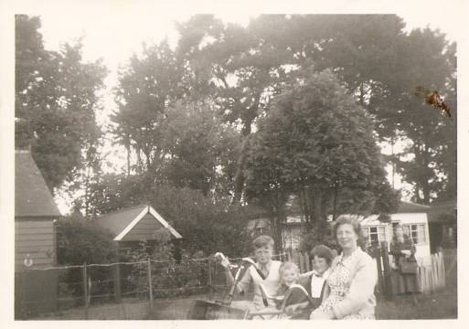 One holiday we used the train to go to Dinkie Doo. This was a converted railway carriage home located near Bornemouth. Peter was about 3, Sylvia 7 and John 11. The homes were in a big field where the children could play with living rooms in the front of the carriages which we only slept in. But it was on a cliff top where erosion was rife and our steps down to the beach fell in. So we had to go in the next field and use their steps. (I have several memories of Dinkie Doo, one was finding a Victorian farthing on a window shelf and Dad seeing me eye it say it was a test to see how honest we were. There was also an eclipse of the sun while we were there and full size tricycles for rent.)
