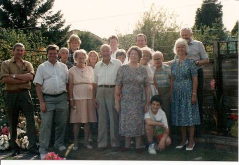 Front Row: Edward Carr (Georges’s son); John; Rose (George’s wife); Dave (Maggie’s son); Me and David. Second Row: Chis (Nell’s husband); Sylvia; Maggie (Peter’s first wife); Fran (Dave’s sister); Tom (Fran’s husband); and Brenda (Dave’s niece). Back Row: Vince; Jason; Peter; and John (Brenda’s husband).