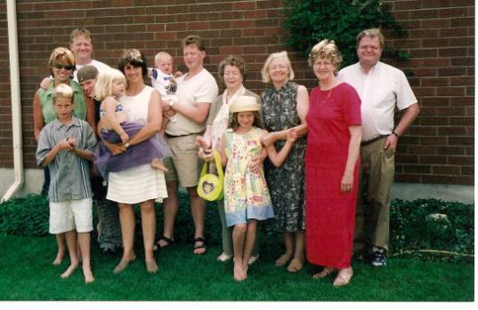 Front: Wade and Emilee. First Row: Kimberley; Daine; Lori (holding Jessica); Jason; Me; Sylvia; Jane; and John. Back Row: Vince; and Jason (holding David).